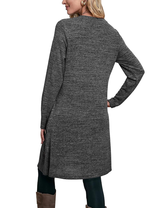 Langärmeliges Tunika-Kleid für Damen, Herbst-Outfits mit Taschen und Knöpfen, GRAU, XX-Large