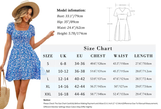 Livonmone Damen Kleid Lässig Sommerkleid Blumendruck Hohe Taille Kleider Puff Ärmel Retro Sexy Casual Tunika Beach Minikleid (Rosa, L)