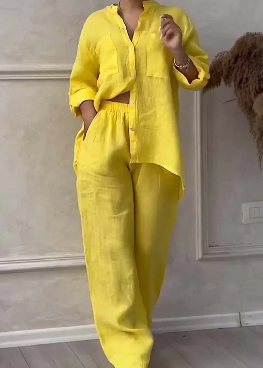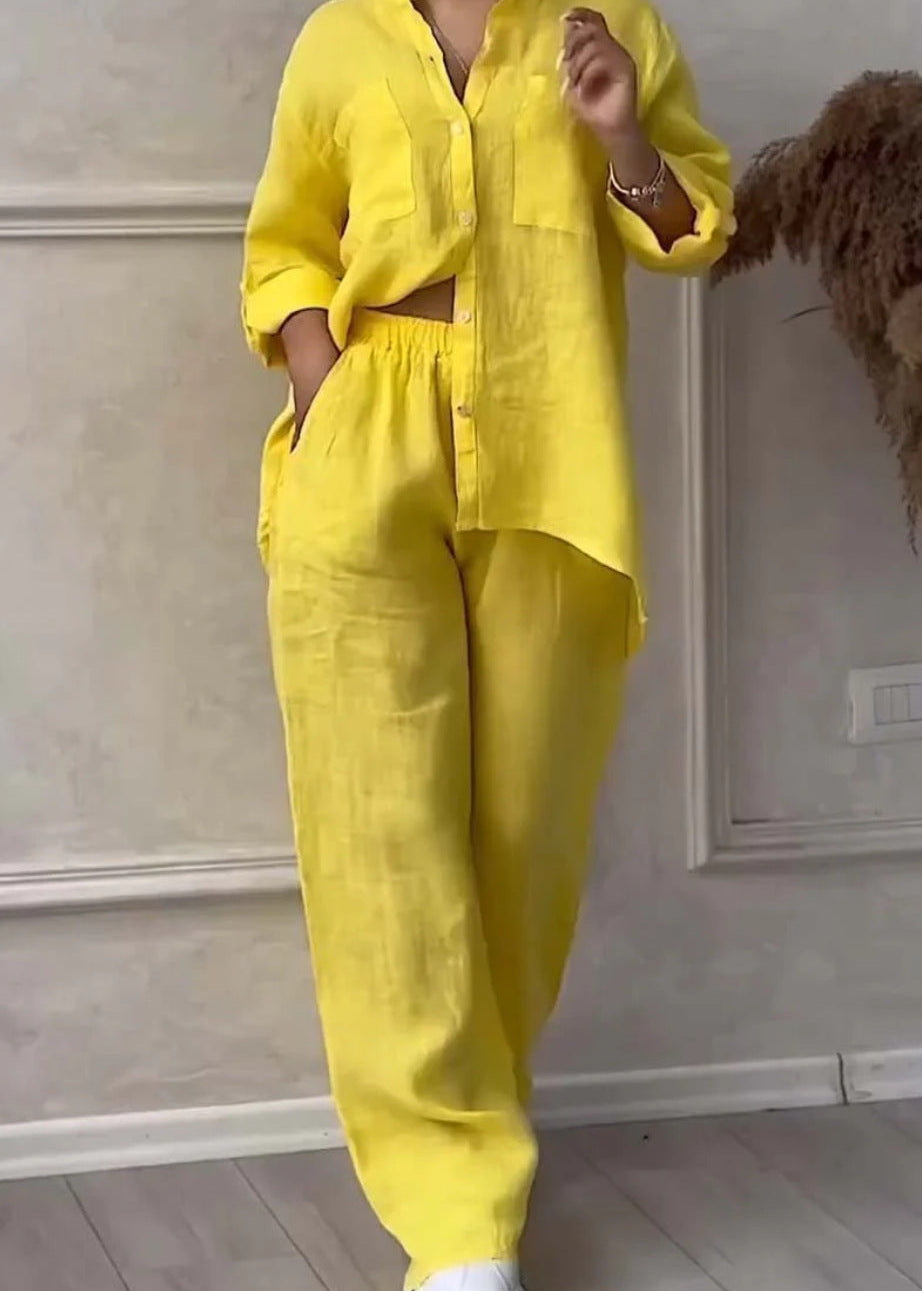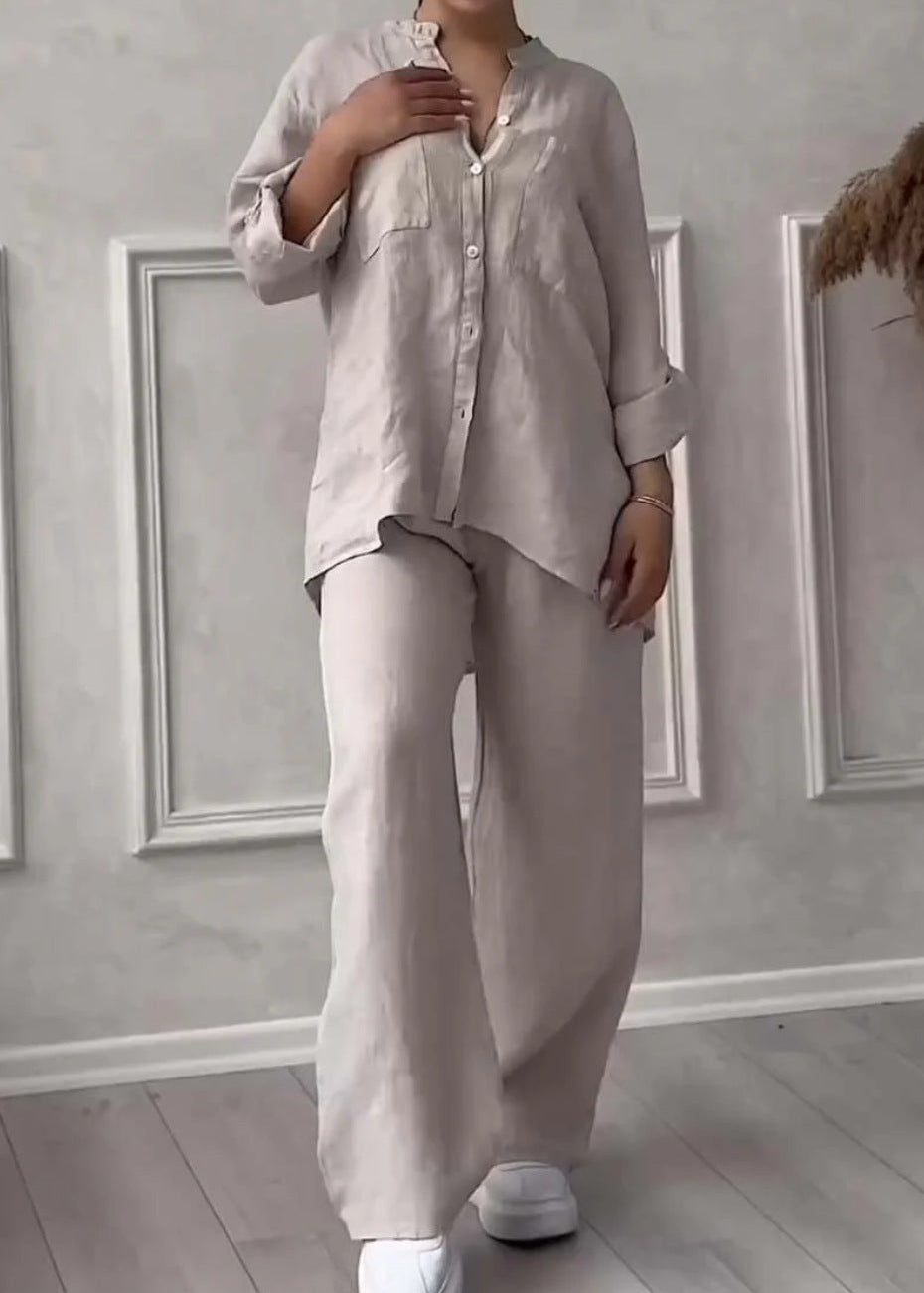 Hergestellt aus einer hochwertigen Mischung aus Baumwolle und Leinen lässt dieses zweiteilige Set die Haut atmen und bietet den ganzen Tag über höchsten Tragekomfort. Das ideale Material, um der Hitze stilvoll zu begegnen.